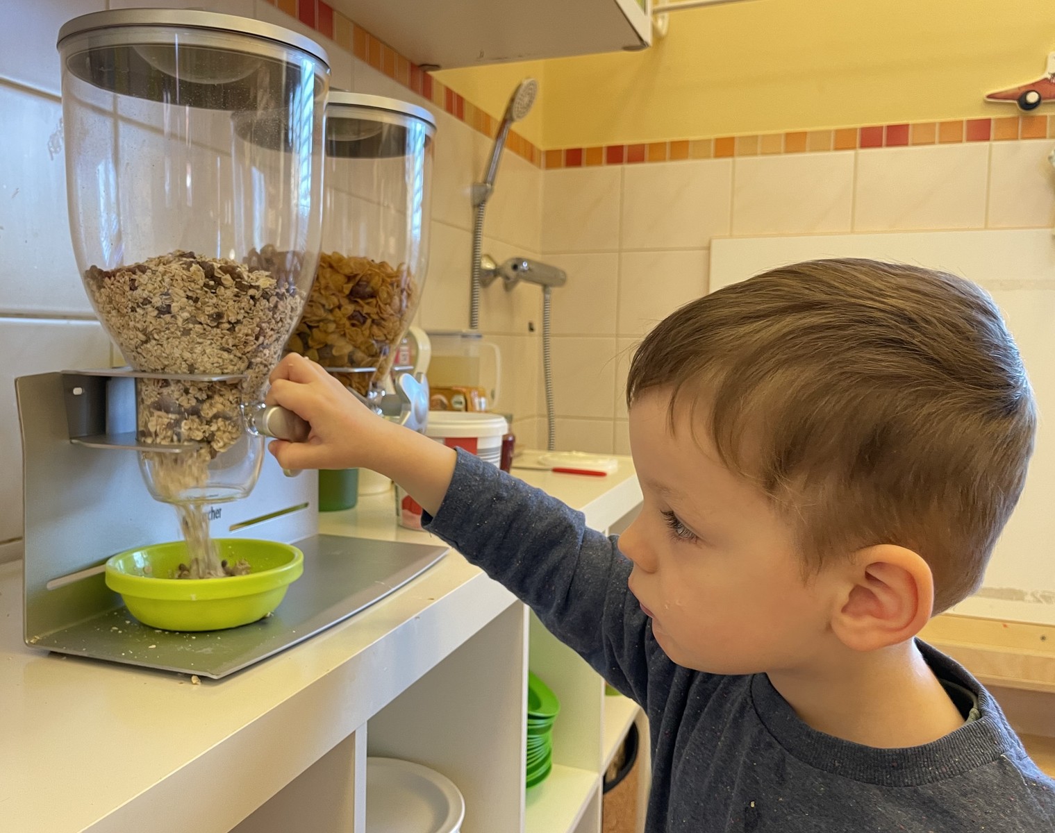 Bei der Vorbereitung des Frühstücks werden wenn möglich die Kinder mit einbezogen. Die Kinder können sich selbst am Bufett bedienen und ihre Mahlzeit zusammenstellen. Dabei können sie sich wichtige Fertigkeiten für die Mahlzeiten aneignen. Hilfreich steht eine Fachkraft den Kindern zur Seite.3.3. Zahlen- und Entenland - Frühe mathematische Bildung als ganzheitlicher Prozess